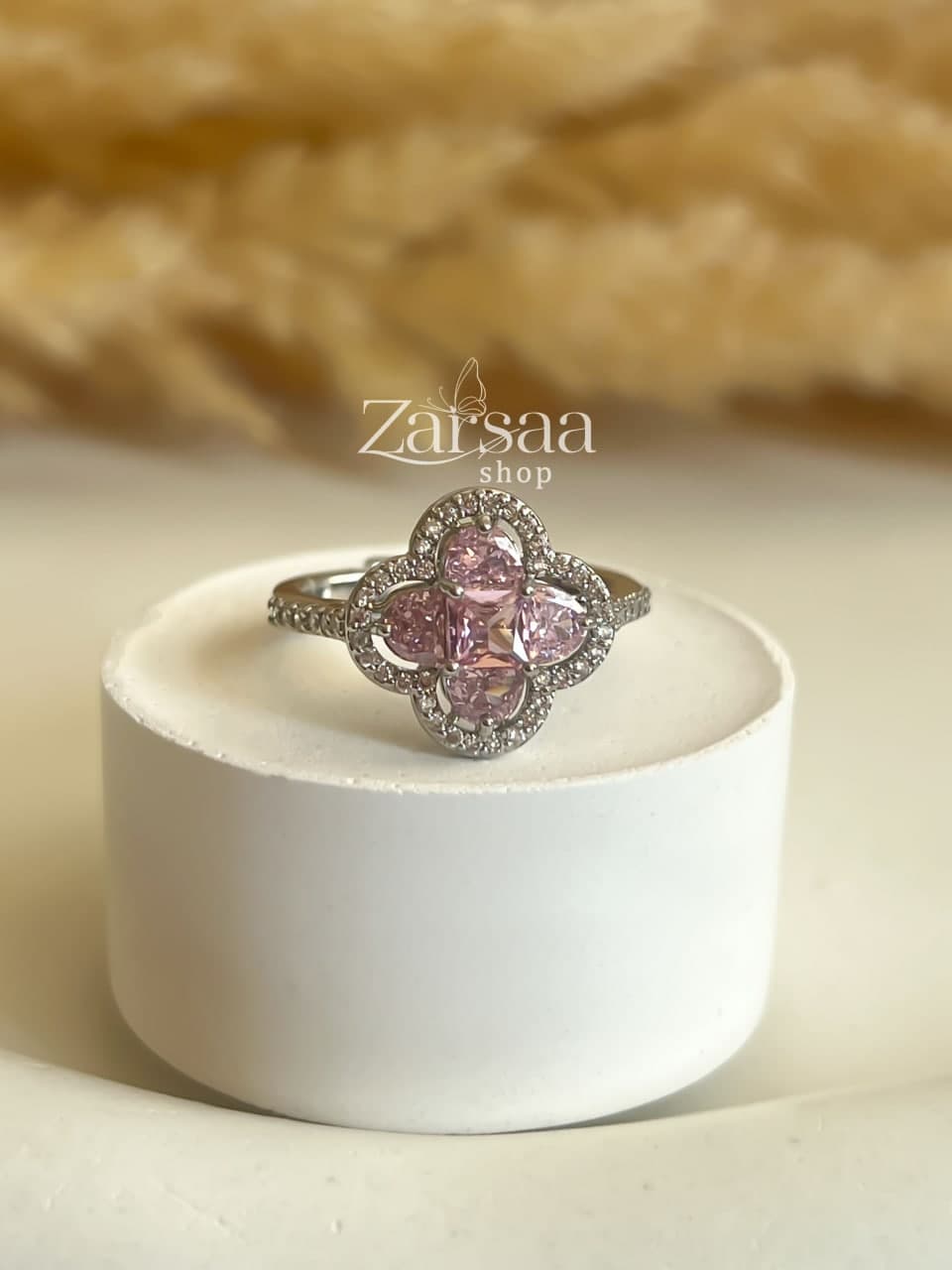 انگشتر فری سایز ژوپینگ به شکل گل چهار پر می باشد .