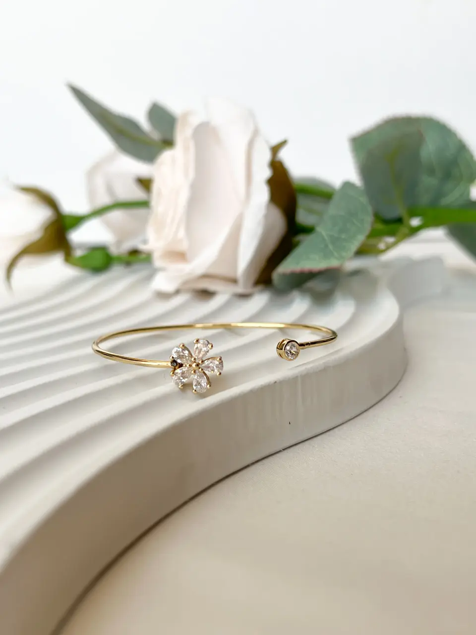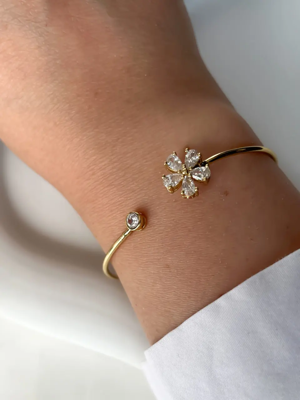بنگل شکوفه نگین دار ژوپینگ با نگین های مخراج کاری شده و بدون ریزش می باشد .