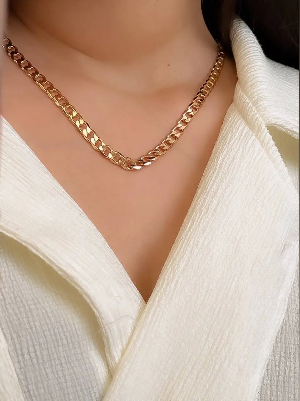 این زنجیر از جنس آلیاژ مس بوده و با وجود آبکاری طلا کاملا ضد حساسیت و رنگ ثابت است .