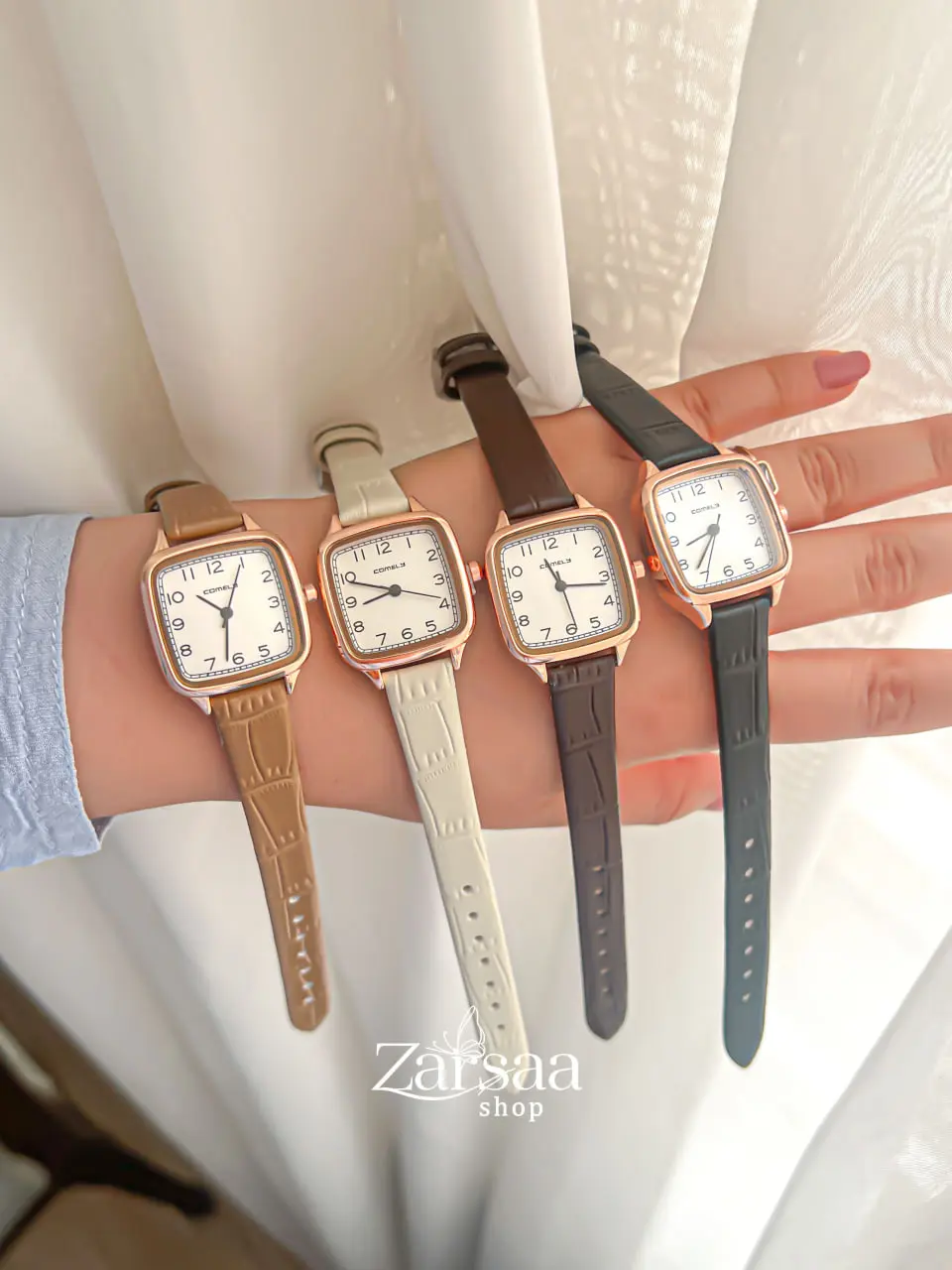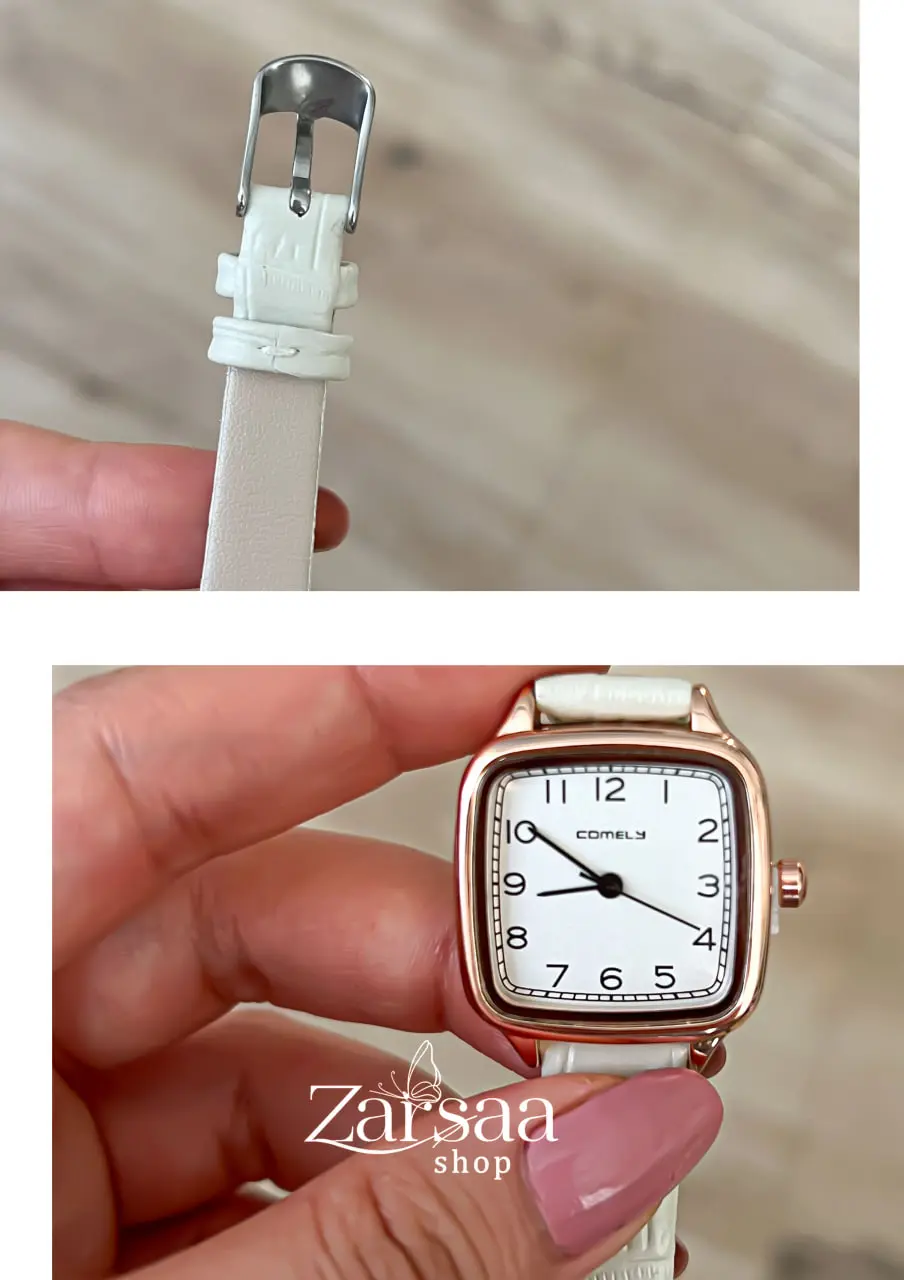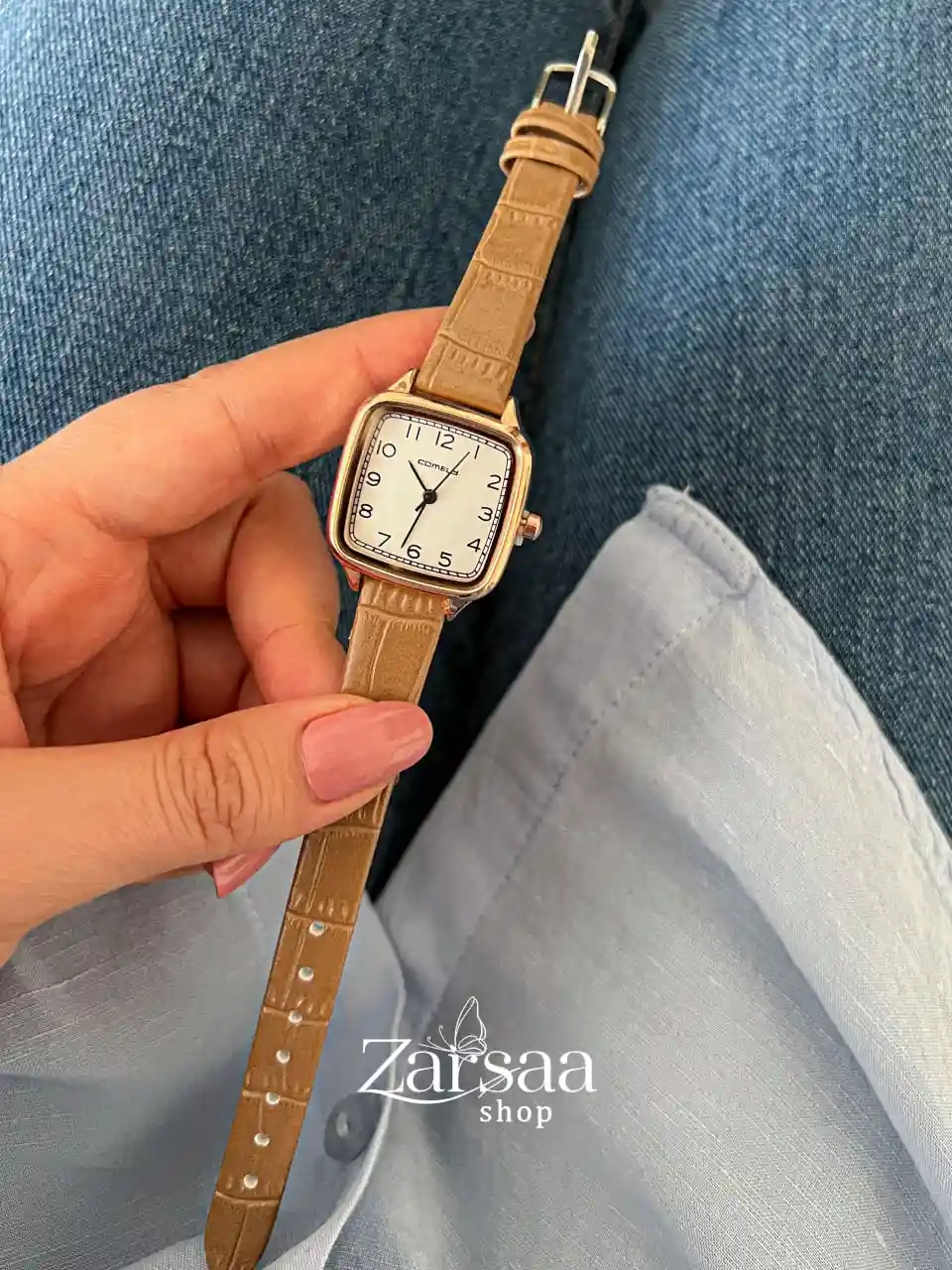 ساعت زنانه بند چرمی مینیمال comely با موتور کوارتز و بند چرم مصنوعی در چهار رنگبندی مشکی ، نسکافه ای ، کرم و قهوه ای قابل سفارش است .