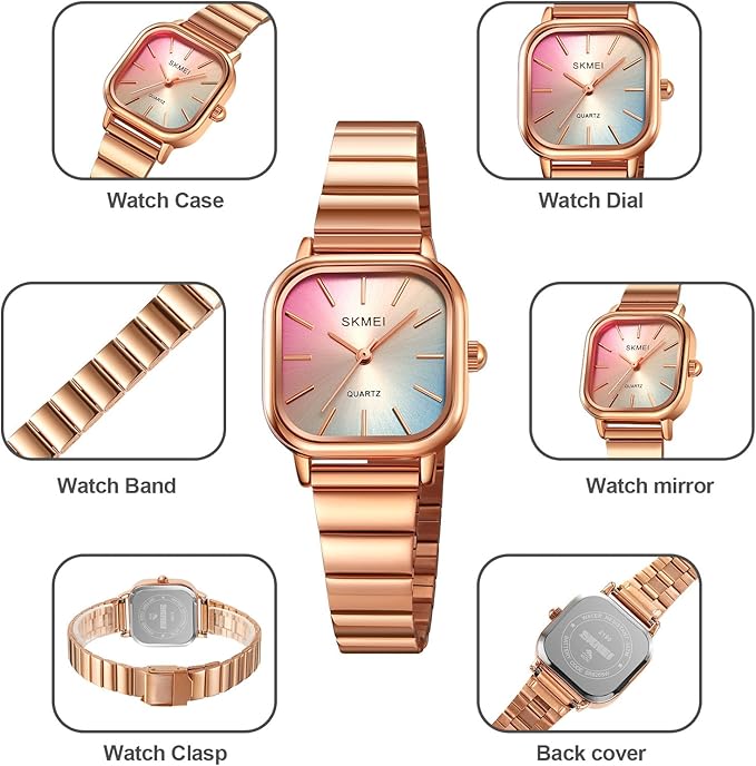 خانه ساعت مچی زنانه ساعت زنانه مربع بند کرکره ای SKMEI