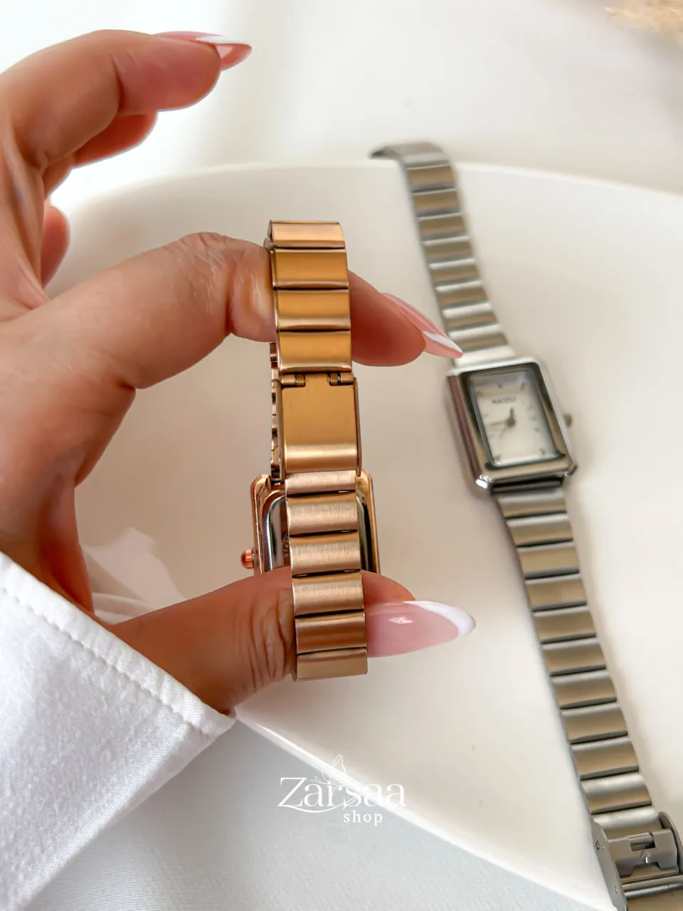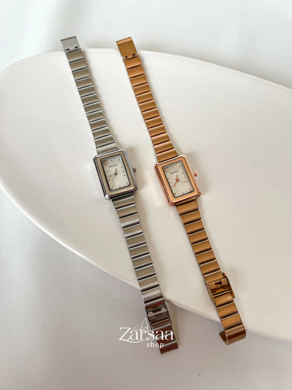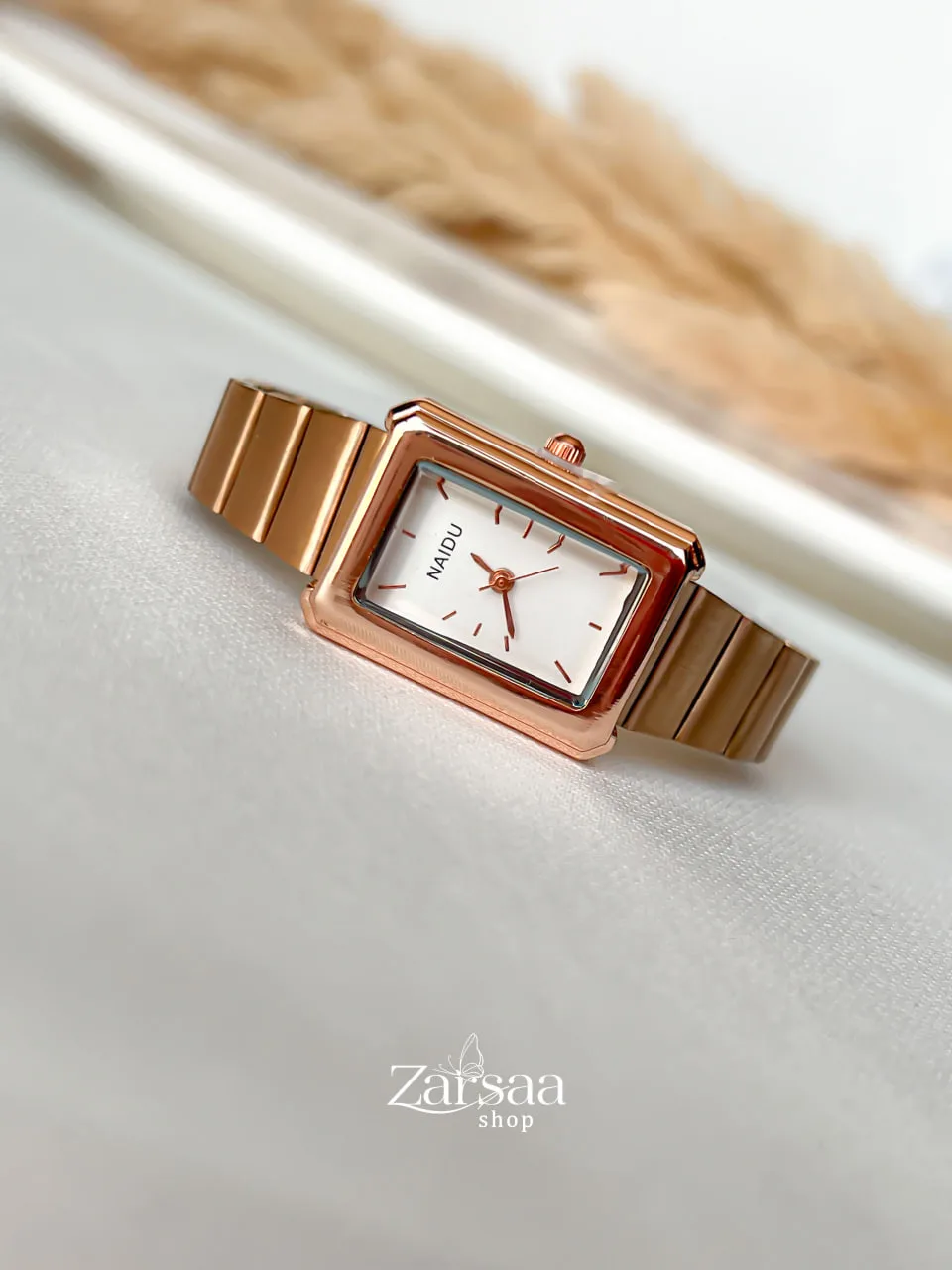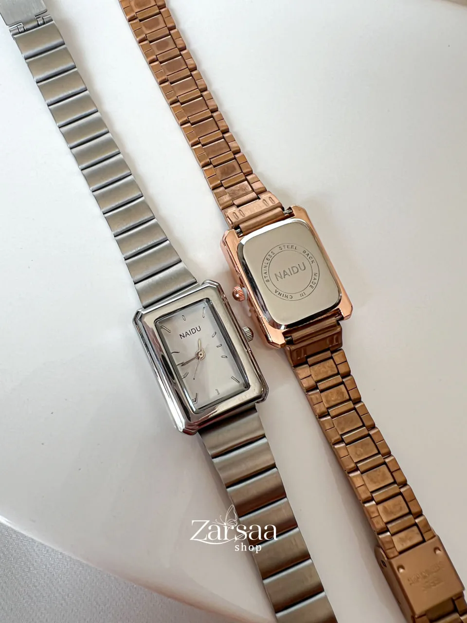 ساعت زنانه مستطیل بند کرکره ای نایدو با ظاهری ساده و مینیمال در دو رنگ بندی سیلور و رزگلد قابل سفارش است .