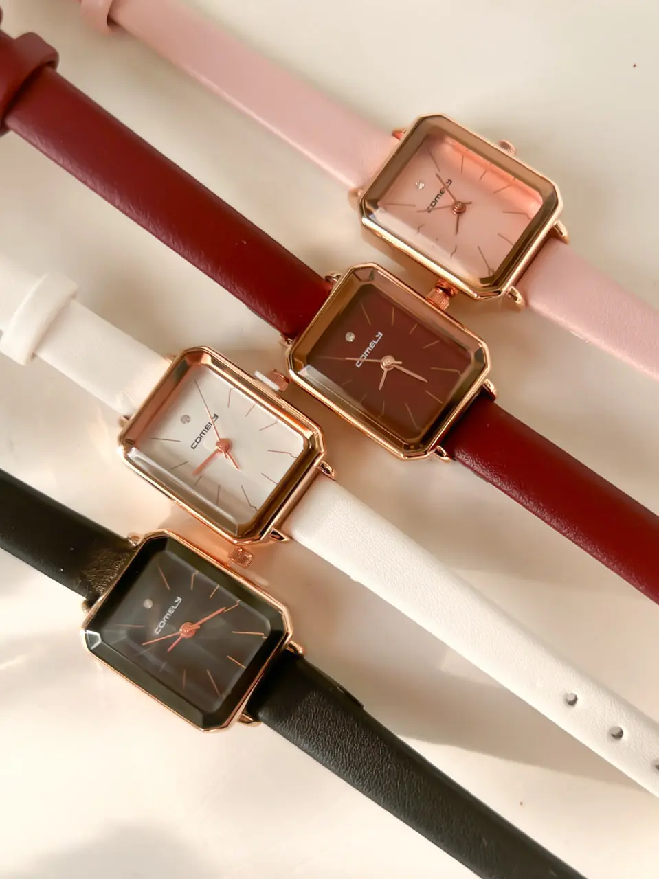ساعت مچی زنانه comely مدل چری با موتور کوارتز و بند چرم مصنوعی در چهار رنگبندی : سفید ، مشکی ، صورتی و زرشکی قابل سفارش است .